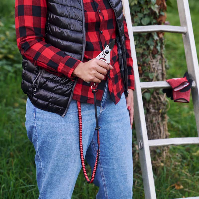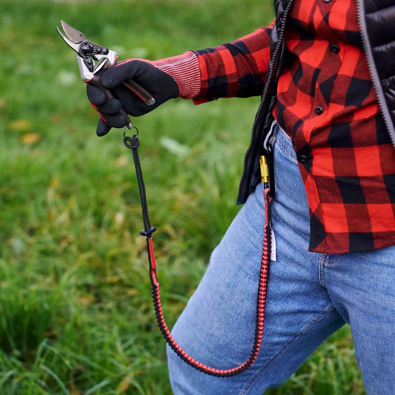 Bezpečnostný popruh FELCO 939 je navrhnutý na profesionálne použitie v teréne, kde je kľúčová ochrana náradia proti pádu. Umožňuje bezpečné pripevnenie záhradníckych nožníc a ďalších nástrojov pomocou krúžku alebo drážky na rukoväti. Vďaka roztiahnuteľnej konštrukcii poskytuje voľnosť pohybu pri práci vo výškach a zároveň minimalizuje riziko straty alebo poškodenia náradia. Ľahko sa zavesí na pracovný opasok a je ideálnym doplnkom pre každého, kto pracuje v náročných podmienkach.